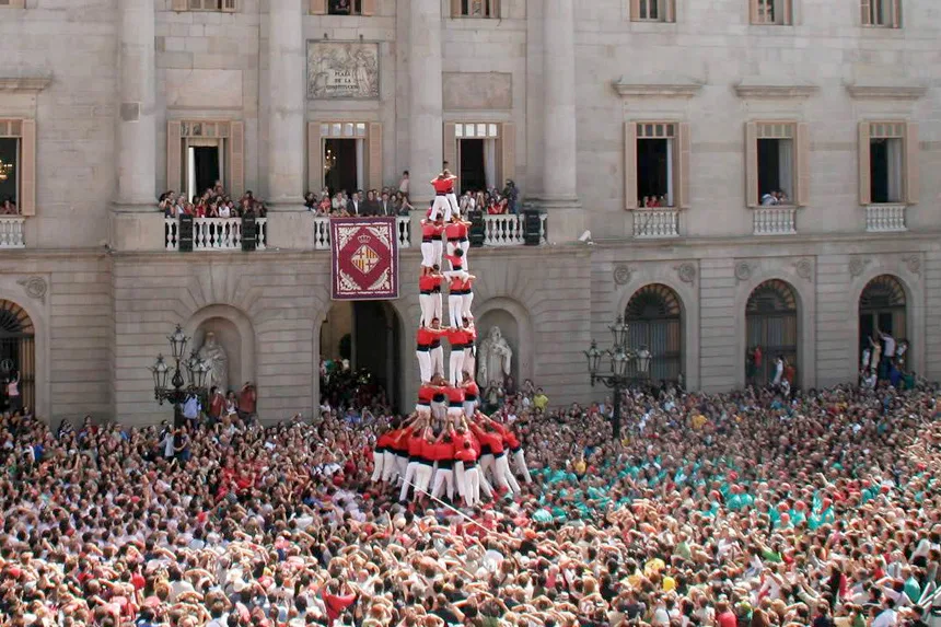 Где посмотреть кастеллес (castellers) башни из живых людей в Барселоне